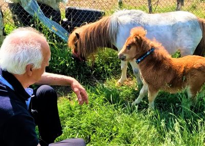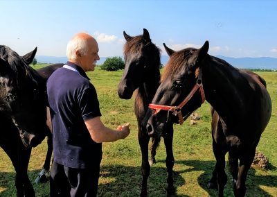 Същевременно може да видите с мен и новите му животни: теленце, биволче, пони, една двойка пауни, които вече чакат нови пиленца. Ще видите и стари познати: Два щъркела и биволицата Албена. Аз винаги съм дълбоко впечатлен от това колко спокойно и нежно се отнася Ангел към животните и как те го приемат и посрещат добре. Може би и вие ще го забележите.